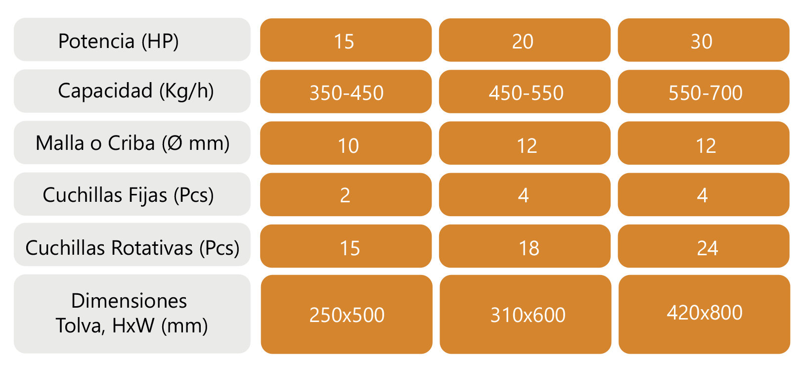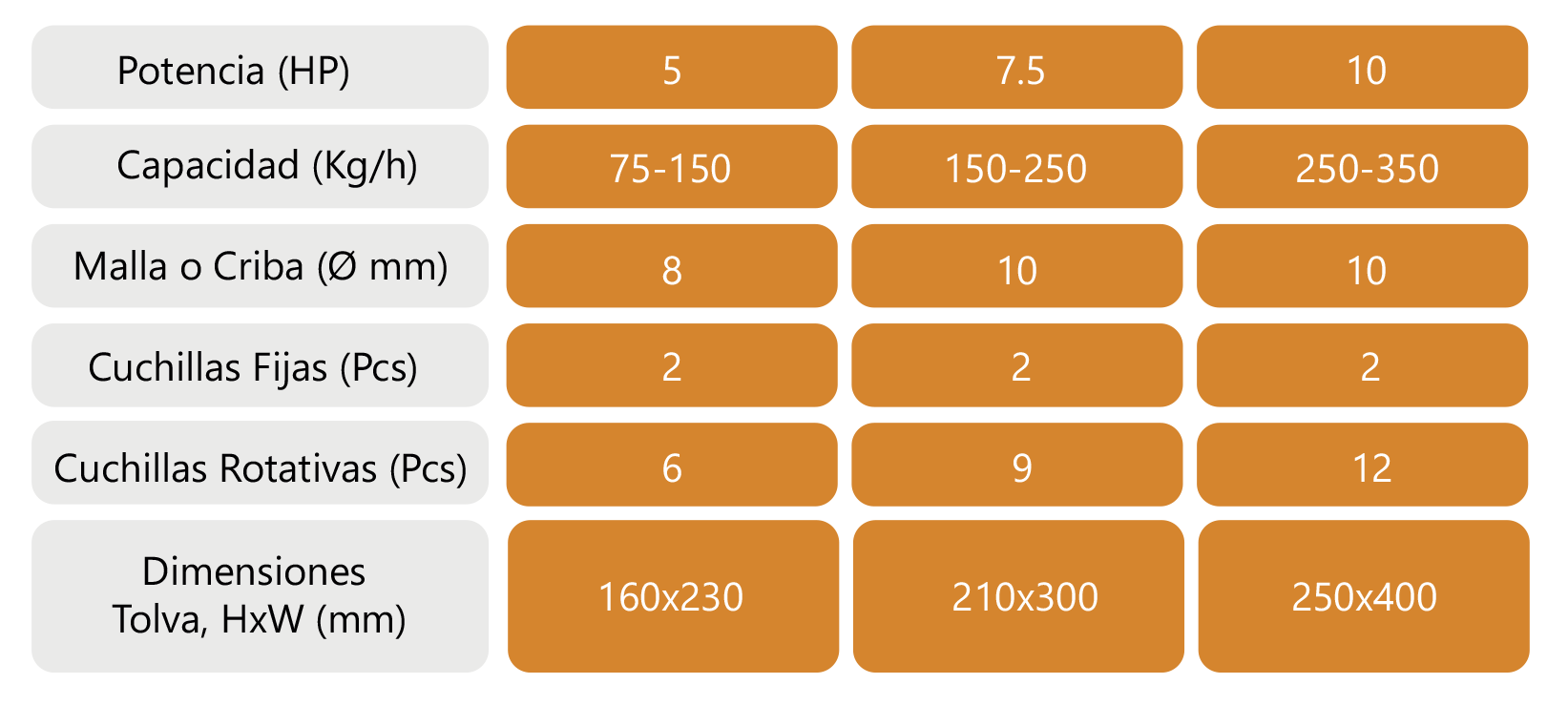 Aptos para todo tipo de resinas plásticas blandas y duras, incluyendo productos resultantes de los procesos de Inyección, Extrusión y Soplado; el tipo de cuchillas garantiza la calidad y eficiencia en el proceso de triturado o molienda.